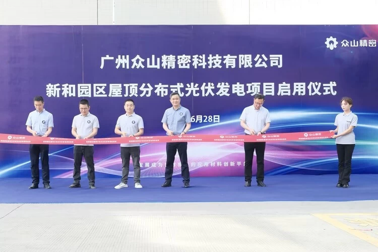 6月28日,广州众山精密科技有限公司(以下简称“众山精密”)举行新和园区屋顶光伏启用仪式,实现并电接网成功运行,让“绿电”持续赋能绿色制造。