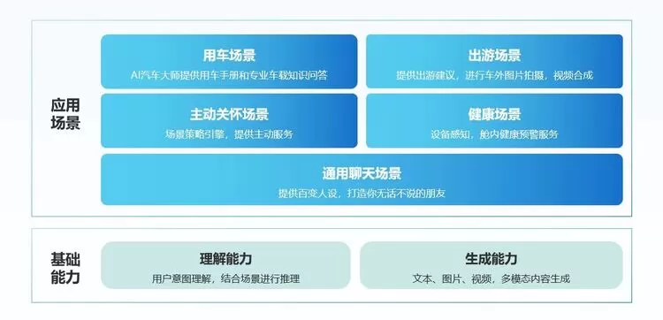 面向场景应用,云知声基于大模型的理解与生成能力,赋能用车、出游、主动关怀、健康、通用聊天五大场景,让座舱体验从简单的语音交互迈向全面智能的个性化交互。