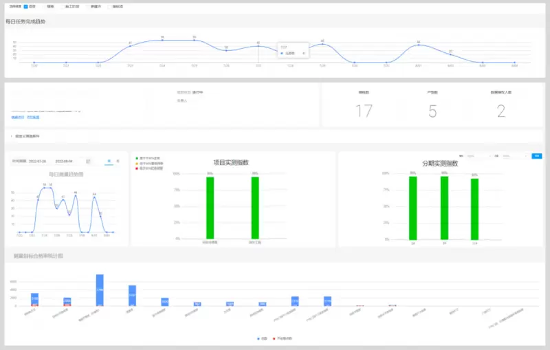 项目管理人员可以从大量实时、客观、可信的回传数据分析出具体项目的施工质量情况,精准定位到具体的问题点以及区域。通过实测数据全局看板,实时了解项目质量、问题以及进度状态,为质量预警和进度管控提供数据分析,做到提前预警管控,将事后管控变成事前管控,综合提升品质和效率。