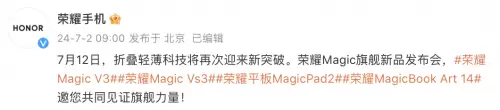 荣耀Magic V3系列7月12日发布 轻薄机身疑似首曝