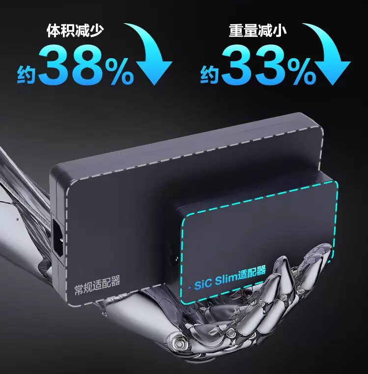 标配的车规级第三代碳化硅电源适配器不仅实现了更高的转化效率,还拥有更轻更小的重量与体积,相比传统电源适配器重量下降多达33%,体积也减小约38%,发热量也显著下降,出门在外放入背包中更加轻松惬意。
