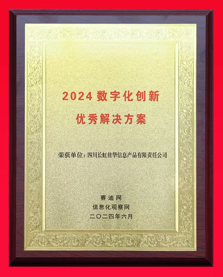 长虹佳华凭借在数字化转型和解决方案创新方面的杰出表现,荣获"2024数字化转型十大创新企业"和"2024数字化创新优秀解决方案"两项大奖。这两项荣誉充分体现了长虹佳华在推动"智改数转"战略、挖掘数字化转型潜力、打造新型生产力方面的杰出贡献。