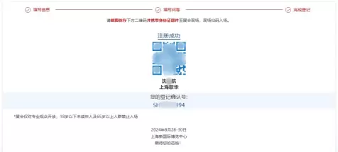 完成预登记后,您的页面将显示二维码入场券,请截图保存,现场凭入场二维码及身份证原件入场。
