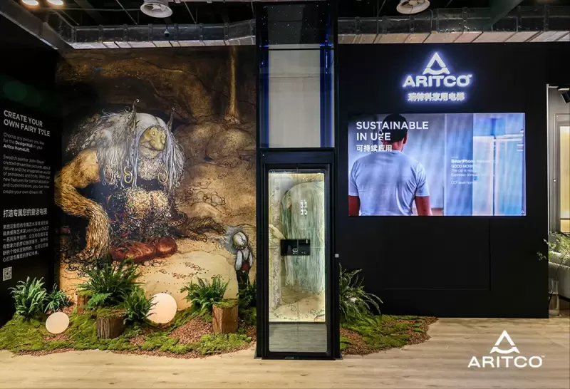 在2024 设计上海期间,ARITCO 瑞特科全球首发了其S系列家用电梯高奢版的最新作品,融合了斯堪的纳维亚设计的精髓和可持续理念,将电梯从一个单纯的功能性产品,转变为一个私人定制的艺术空间。这款电梯的设计灵感来自于瑞典的自然景观,以及著名的画家和插画家约翰·鲍尔的作品,将森林、巨魔和公主等元素巧妙地融入到电梯的背景墙、地毯和控制面板中,营造出一种神秘而浪漫的氛围。