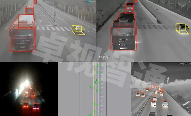 针对“路”端——卓视智通自主研发的路侧多模态融合感知设备,支持采用纯视觉的感知模式,采用类似特斯拉FSD所采用的BEV算法,针对路侧感知进行了神经网络架构改进,并结合海量路侧数据进行了针对性训练,可以有效利用各城市已经安装的路侧摄像头设备(利旧),具有成本低、易落地的显著优势;除此之外,针对夜间照明条件较差的道路场景,卓视智通还自主研发了配置「可见光+红外+毫米波雷达」三波融合的多光谱雷视一体机,其可以实现白天、晚上全天候全要素的精准感知,除了异常停车、行人、抛洒物、交通事故、道路施工、车辆逆行等常规事件检测之外,其还支持道路结冰、道路积水、道路塌方、火灾、团雾、能见度低等20余种道路风险和交通异常事件的实时精准识别。