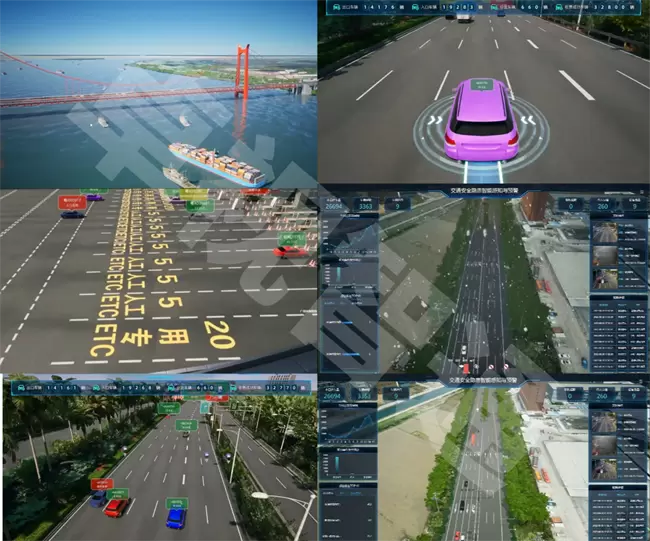 针对“云”端——卓视智通基于新一代人工智能、三维重建及实时渲染技术,构建了一套全要素实时孪生公路系统应用平台,基于前述对道路交通参与主体精准实时的感知和语义理解结果,并基于三维渲染引擎,可实现高速公路、国省道干线公路、城市快速路,以及隧道、桥梁、互通立交、长下坡、急转弯等重点场景的高精度建模和实时重建,将现实交通实时动态运行信息在虚拟的数字空间中,从精度和效率两方面,实现“1:1”动态映射,为信息向车端下发,构建了数字底座和渲染基础。