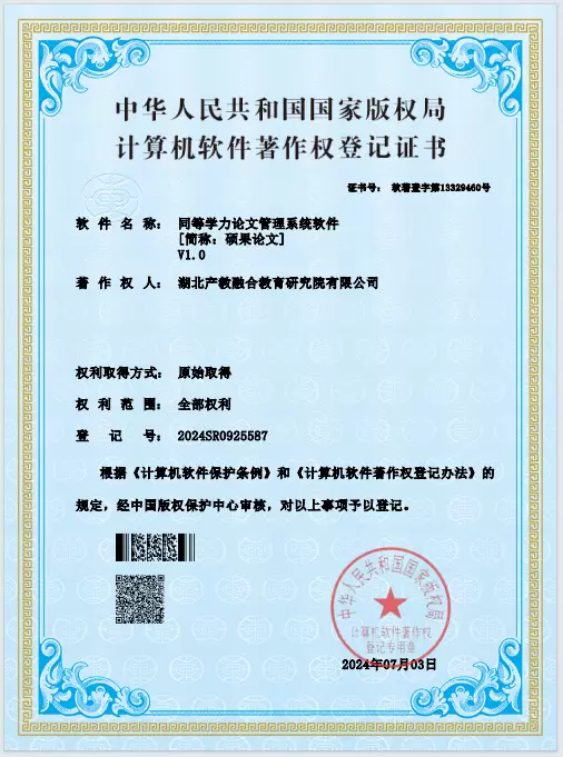 近日,根据《计算机软件保护条例》和《计算机软件著作权登记办法》的规定,经中国版权保护中心审核,湖北产教融合教育研究院自主研发的“同等学力师生双选管理系统软件”和“同等学力论文管理系统软件”顺利通过中华人民共和国国家版权局的审查,均荣获计算机软件著作权登记证书。