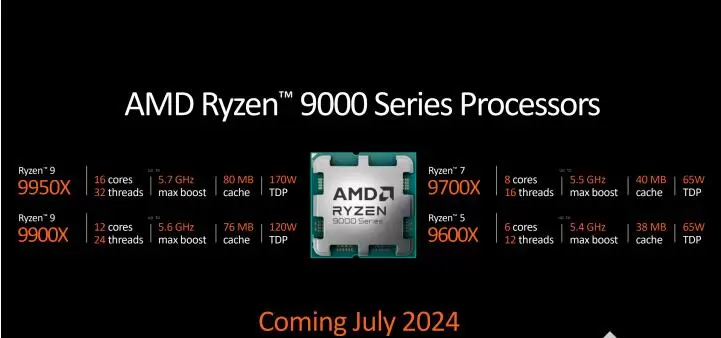 AMD此前已经在COMPUTEX 2024上发布了新一代基于Zen 5架构产品,代号“Granite Ridge”的锐龙9000系列处理器,预计本月就会上市。接下来AMD还会带来加入3D垂直缓存(3D V-Cache)技术的锐龙9000X3D系列处理器,此前消息称该系列处理器九月就有望亮相,相较此前的产品更早。