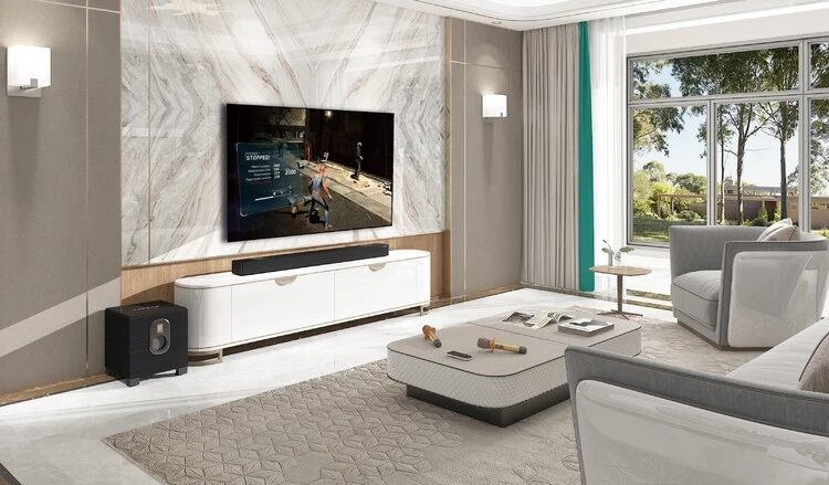 投影技术、激光电视的快速发展离不开对音质补偿设备的需求。普通音响存在体积厚重、外形难看、应用单一、布线复杂等问题,这些都增加了消费者选购音响的难度。假设使用者为了弥补电视越做越薄而导致音质上的短板,单独为电视配置繁琐的音响系统,又会使好不容易创造出的简洁空间无法发挥优势,得不偿失。