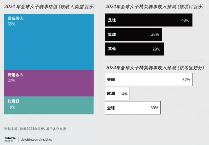 性别平等已经成为全球性的社会议题,女子体育运动的商业价值也不断凸显。根据Deloitte Insight,2024年,女子精英赛事收入将首次突破十亿美元大关,预计总收入将达到12.8亿美元,将比 2021年市场估值高出三倍。