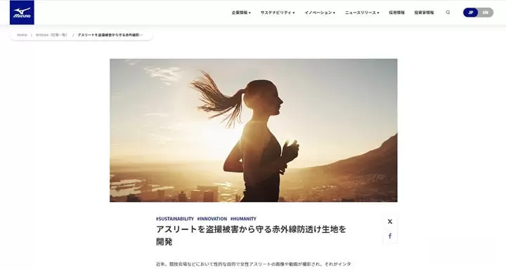 日本运动品牌美津浓(Mizuno)开发出一种能够阻挡红外线摄影的特殊布料,这种创新材料将在2024年巴黎奥运会上首次亮相,为女性运动员提供更好的隐私保护,赢得大范围好评。