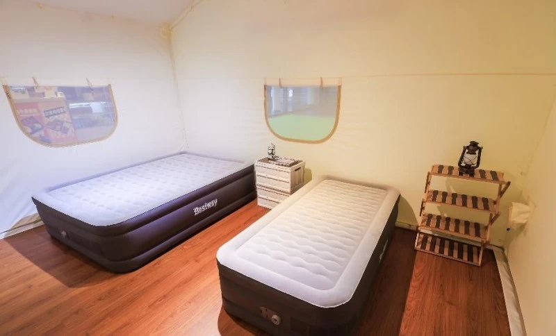 “揽月度假酒店帐篷”借鉴了江南建筑风格,针对营地帐篷抗风防雨的特别需求,独创“烟雨楼”篷顶设计,无论哪个角度的大风,都能得到较小的风阻,保障大风雨天气下的帐篷安全性能。45㎡超大空间,创新空间布局,卧室、客厅、卫生间完全独立,完美解决传统酒店帐篷卧、客、卫不能分离的问题,最大限度减少相互之间的干扰,确保私密性和实用性。