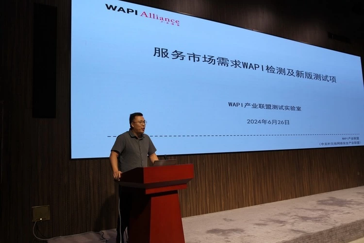 会上,朗松珂利、常州中能、莲雾科技等企业现场展示了新款WAPI产品,引起与会人员的浓厚兴趣。2024年第二季度,智芯公司、九域腾龙、广哈通信、朗松珂利、常州中能、上海乐研等单位的WAPI系列产品相继通过了WAPI产业联盟测试。