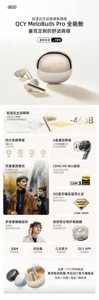 一般而言,自适应主动降噪功能是旗舰级耳机的专属,但QCY偏要做个“挑战者”,通过产业链、渠道和技术创新优势,打造了支持高达-46dB的自适应主动降噪功能的新品QCY全能舱 Melobuds Pro,可阻隔噪音99%以上,让用户不管是在日常通勤、休闲娱乐、出游旅行,还是在办公学习等不同场景中,都能有效地隔绝外界噪音,沉浸在属于自己的声音世界当中。