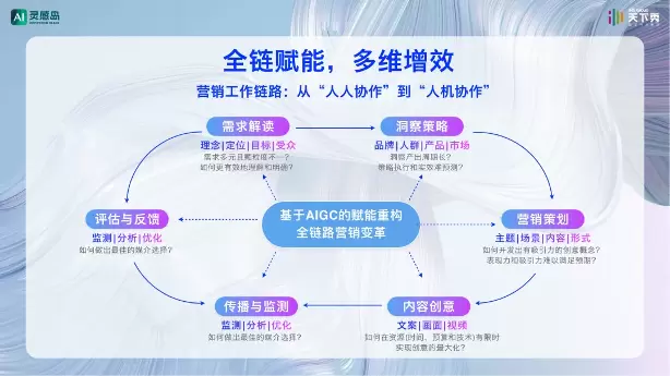 覆盖多模态内容智能创作、智能编辑优化、媒介资源管理、内容分发推广、聚合展示、销售线索收集、数据反馈及效果评估等品牌营销全链路,为中小微企业提供智能营销解决方案。