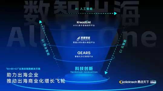 在广告营销领域,易点天下在AI大潮下推出了3款AI应用工具:KreadoAI AIGC数字营销创作平台、数眼智能和Gears。