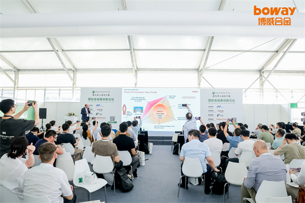 会上,史蒂芬阐述了汽车信号连接器和大电流连接器的应用特点,分析铜合金需要具备的物理与机械性能,并分享博威合金在汽车连接器上的定制化选材方案。同时,基于汽车用材料高要求,还分享了博威材料的表面镀层工艺。史蒂芬指出,博威合金的连接器材料在设计、工艺等诸多方面表现优异,已成为新能源汽车等产业发展的一大助力。