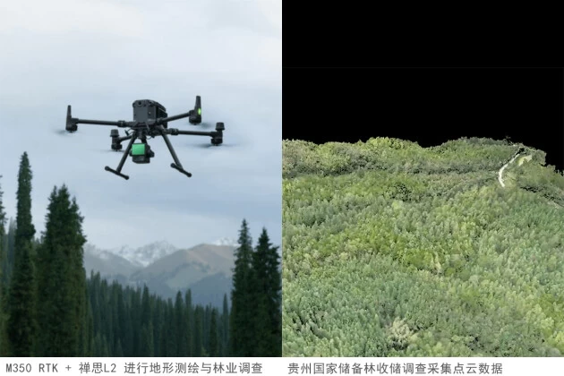 贵州国家储备林收储调查中,黎平县拥有460万亩国有储备林,森林覆盖率达72.75%。为提高林业管理效率,采用大疆禅思L2激光雷达进行调查,替代传统人工方法。大疆的Matrice 350 RTK搭载禅思L2,50分钟飞行了两个架次。最终生成了相关的点云图,再通过滤波最终呈现出单木分割的情况,来算出它的小斑、单木数量、数高以及蓄积量。禅思L2的强穿透性和高精度,使其成为林业管理的重要工具,提升了林业资源调查和森林保护的能力。