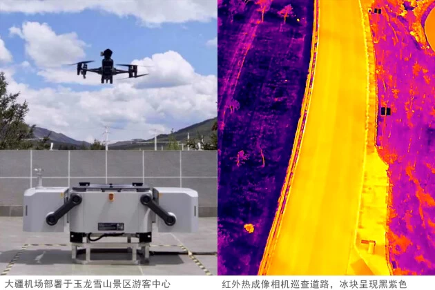 国家级5A 景区通常以独特的自然和人文景观而闻名,传统园区管理靠人工巡查,存在效率低,盲区多等问题。如玉龙雪山景区面积415平方公里,引入大疆机场后,设置7条常态化巡查航线,每天最高11架次巡查,有效提高了巡查效率和精准度。清西陵景区则利用大疆机场的红外热成像相机,即使夜间也能清晰识别人员,及时排除安全隐患。5A景区通过大疆机场实现7x24小时无人值守、自主巡查,有效扩大了巡查范围,保障了景区安全。