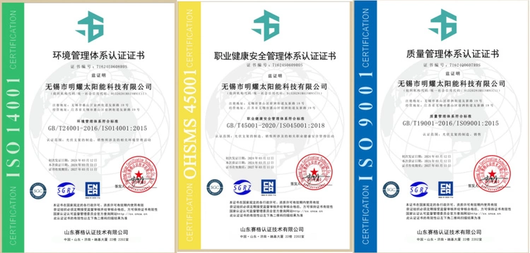 公司管理人员12人,工程师8人,生产员工100余人。明耀科技拥有了优秀的管理人才,精良的专业技术人才以及精湛的生产工艺,并严格参照ISO9001质量管理体系以及各国光伏行业标准进行研发和制造,使得明耀科技的产品受到了客户们的一致肯定与信赖。