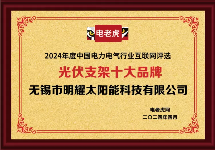 无锡市明耀太阳能科技有限公司荣获“光伏支架十大品牌”荣誉称号