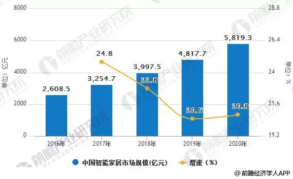 2016-2020年中国智能家居市场规模统计及增长情况预测