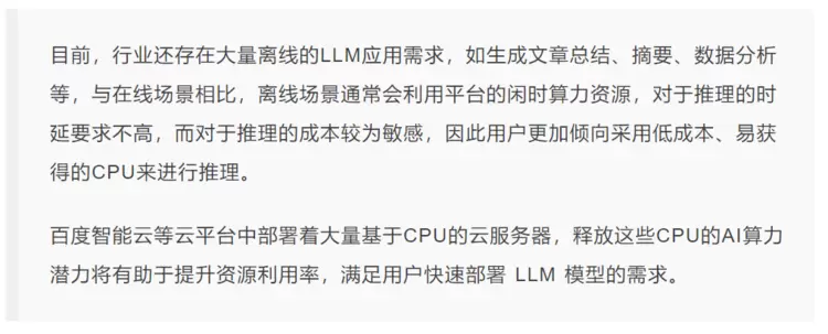 不仅如此,利用充足的CPU资源,降低对于AI加速卡的需求,从而降低 LLM 推理服务的总体拥有成本 (TCO),特别是在离线的 LLM 推理场景中表现出色。