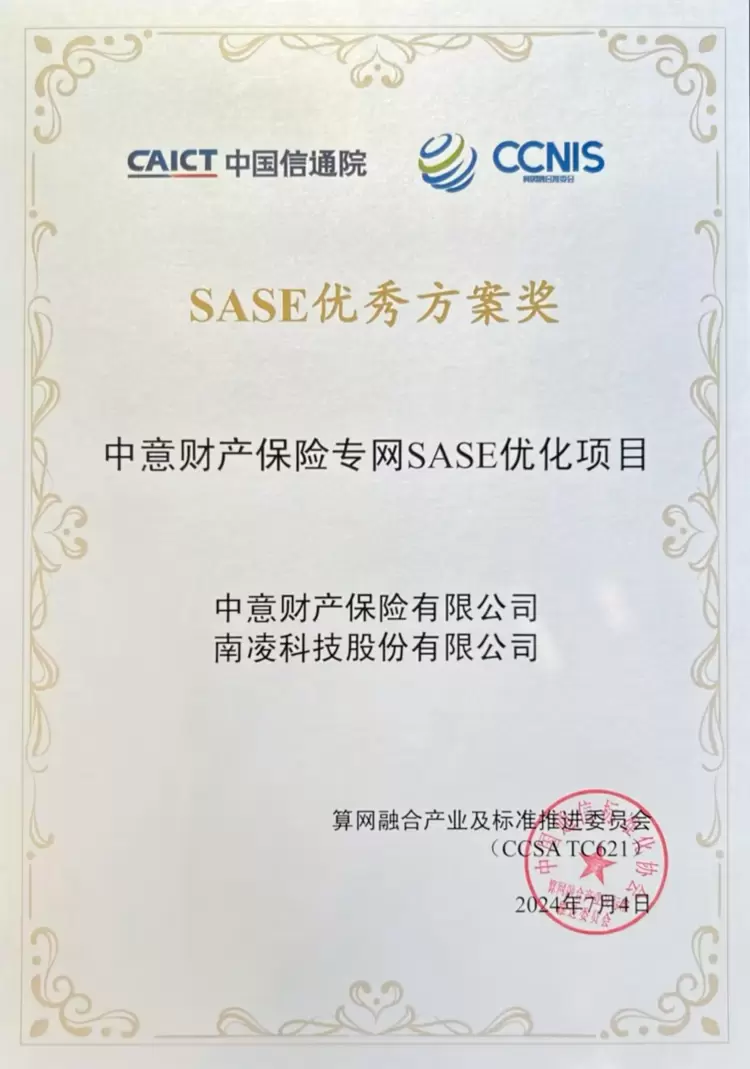 南凌科技赋能中意财险专网SASE优化项目获评信通院“2023年度SASE优秀方案奖”