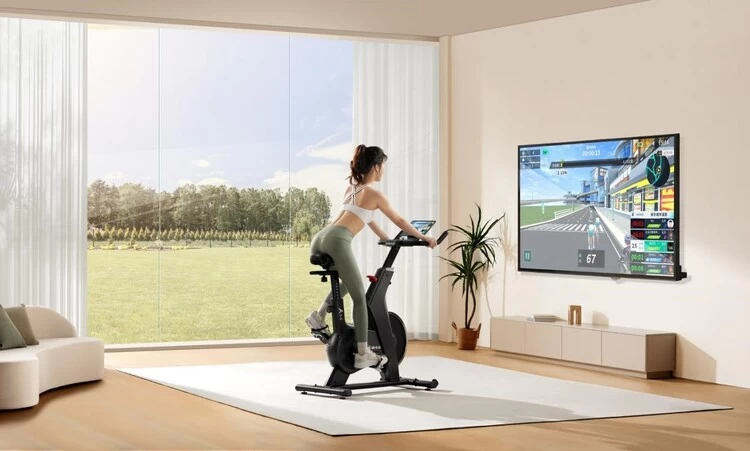如舒华A5-S Pro 动感单车采用自发电骑行系统节能环保,并且搭载舒华运动APP,不仅可体验丰富的智能课程及3D游戏骑行、语音互动、AI智能调节阻力等功能,还可通过骑行能力测试系统测试来访者的运动能力值,系统自动匹配运动强度,从而达到更好的运动体验。