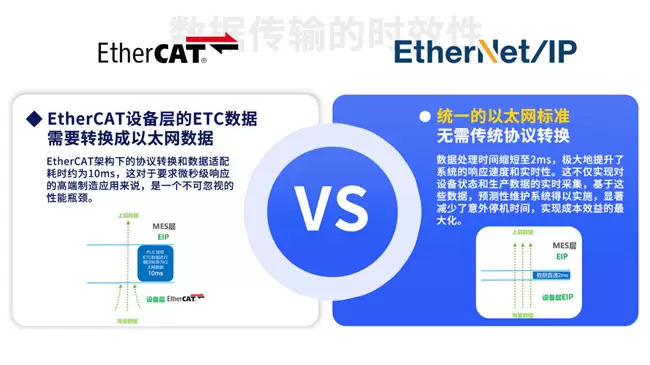 EtherCAT架构中,PLC作为控制系统的核心,需要接收设备层的ETC数据。这些数据在被PLC处理前,必须经过一个转换过程,适配为以太网数据。这个过程不仅增加了系统的复杂性,也引入了额外的时延。具体来说,EtherCAT架构下的协议转换和数据适配耗时约为10ms,这对于要求微秒级响应的高端制造应用来说,是一个不可忽视的性能瓶颈。