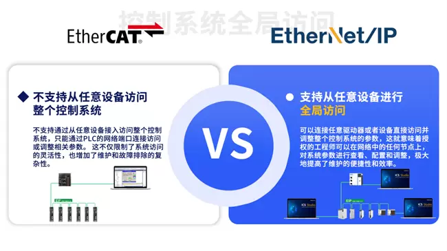 EtherCAT通信协议下,不支持通过从任意设备接入访问整个控制系统,只能通过PLC的网络端口连接访问或调整相关参数。这不仅限制了系统访问的灵活性,也增加了维护和故障排除的复杂性。