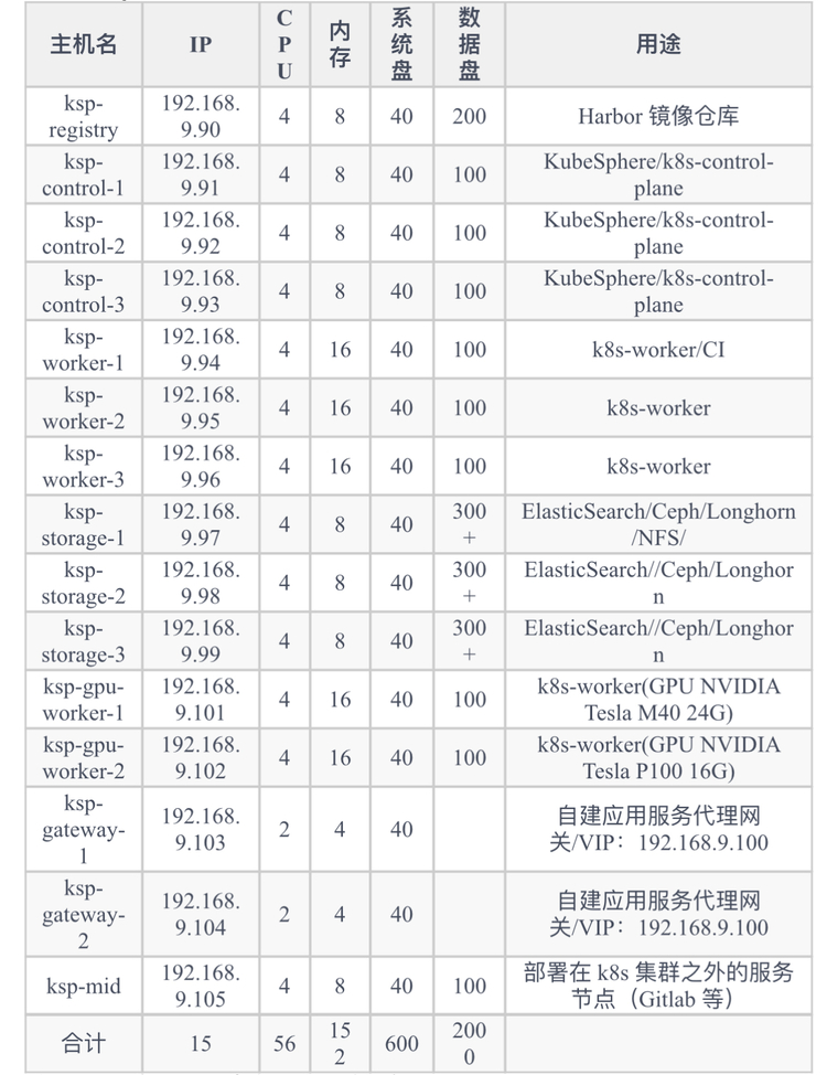 KubeSphere最佳实战「2024」系列文档的实验环境硬件配置和软件信息如下: