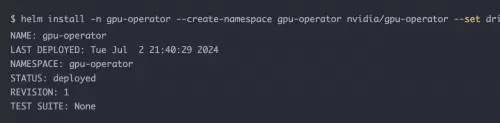 使用默认配置文件,禁用自动安装显卡驱动功能,安装 GPU Operator。