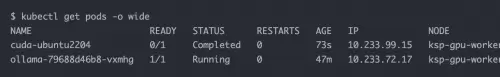 从结果中可以看到 pod 创建在了 ksp-gpu-worker-1 节点(该节点显卡型号 Tesla M40 24GB)。