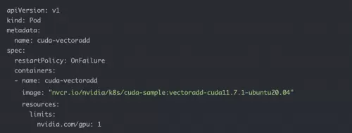 1.创建资源清单文件,vi cuda-vectoradd.yaml