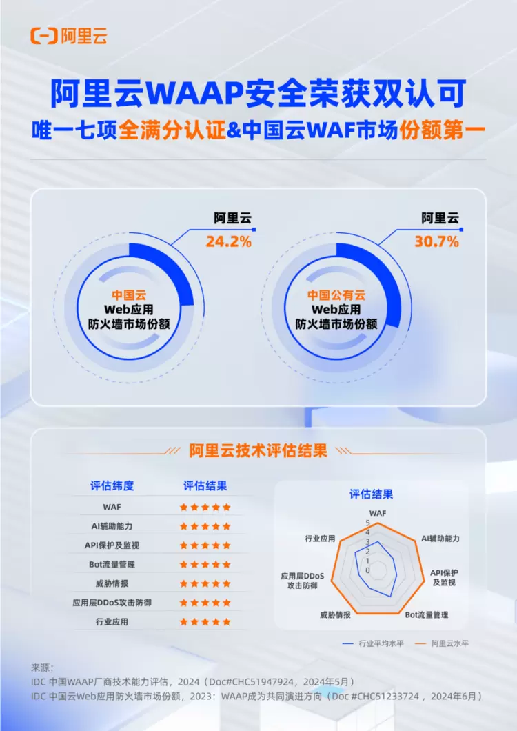 市场份额第一!阿里云WAAP安全产品能力获IDC评测七项满分