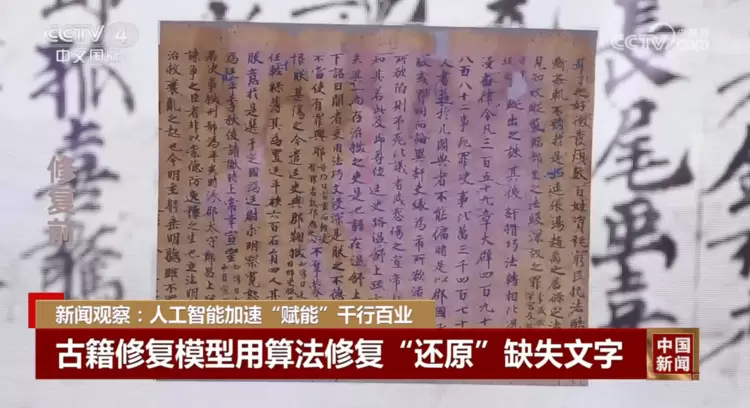 CCTV-4用镜头记录了敦煌遗书《汉书·刑法志》未修复的状况。在扫描全能王智能高清滤镜算法及AIGC技术的加持下,这份曾凋零在千年时光中的残卷,被科技补全了缺失的角落,第一次以完整的姿态向世人展现了它的历史价值。