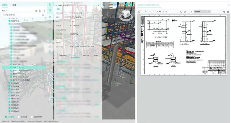 通过挖掘数据的内在联系,建立模型与数据、数据与数据间的关联关系。在无需专业设计软件的情况下,用户点击对象模型即可查看该模型关联的对象属性数据或相关图档,实现二三维联动。用户还可直接在浏览器端查看、批注与检查文档,查询文件和生成报告,有效提升企业各系统间数据集成度。