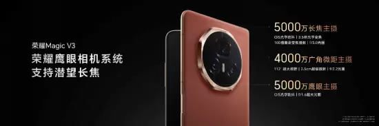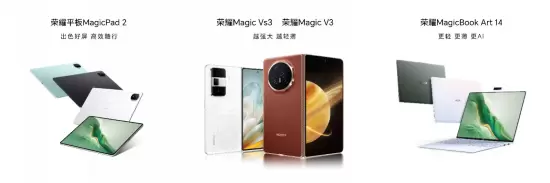 荣耀始终坚持双轮驱动的产品主义,凭借在折叠屏领域近百亿的研发投入与技术深耕,为折叠屏手机带来了轻薄、可靠、高效的全新体验,满足了用户对极致科技的追求。荣耀Magic V3和荣耀Magic Vs3的推出,再次在折叠屏手机领域实现诸多技术突破和功能革新,不仅通过全新荣耀鲁班架构实现极致轻薄设计,更带来第三代青海湖电池、航天特种纤维材质、荣耀视力舒缓绿洲护眼屏、双卫星通信、2.5米防水等创新体验,充分诠释了荣耀用科技魔法为消费者创造极致体验的价值主张。