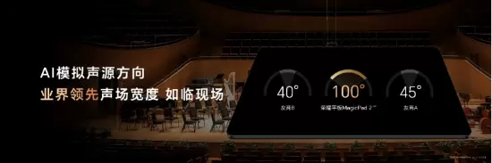 相较上代产品,荣耀平板MagicPad2的声场宽度达到100°,直线体验范围达到80cm。尤其在八扬声器系统的加持下,荣耀平板MagicPad2的音效表现远超同档产品,为用户带来沉浸式的听觉享受。