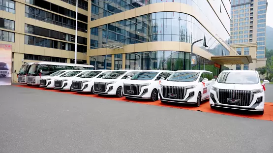 13日上午,仪式现场彩旗飘扬、鼓乐喧天,2辆红旗国悦豪华礼宾车,3辆新红旗H9旗舰轿车,15辆红旗HQ9豪华旗舰MPV整齐停放,大气之姿,引人瞩目。雄壮的国歌声起,鲜艳的红旗飞扬,隆重热烈的气氛中,交车仪式盛大启幕。