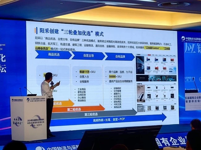 会上,郑敏先生以阳采集团为例,向与会嘉宾及领导分析了其在数字化供应链建设中的创新与实践:在数字化采购领域里面,有一条线是把SKU数量不断往大扩,另一条线就是基于一定量的SKU形成一个在“工业品领域的Costco”“工业品山姆会员店这种模式。