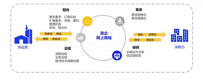 政企网上商城有别于消费者网购商城。政企采购是企业行为,是组织和流程决策,而消费者网购是个人行为和个人决策;政企采购要求是阳光集采、合规保供、增效降本;消费者网购商城要求供应商越多越好,因为消费者网购商城的商业模式是卖流量,政企网上商城更加关注合规高效低成本,要对品类、品牌、商品要进行管理和优化。