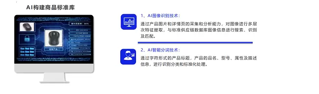 AI+商品库,优化商品识别和标准化处理。AI大模型从小切口和具体场景切入,在建立商品库的过程中,阳采探索通过AI图像识别对商品图片进行搜索、识别和匹配,通过AI智能分词来对商品的品名、型号、属性及描述信息,进行识别和标准化处理,从而探索了一套工业品的商品库。当前,大多数电商采购平台,因为早期数据的数字化水平低,大数据缺失基础完整的数字化重要信息,例如:标准产品图片,标题,品名,重量,体积,69码,电商平台链接,税收编码等。就会出现高达几百万巨量产品不良数据,并且重复产品多、比价难、选品和下单决策缺乏数据参考依据、产品参数数据无法对比等一系列问题。阳采供应链正在帮助政采云等大型电商平台进行数据清洗、修正和整理工作。