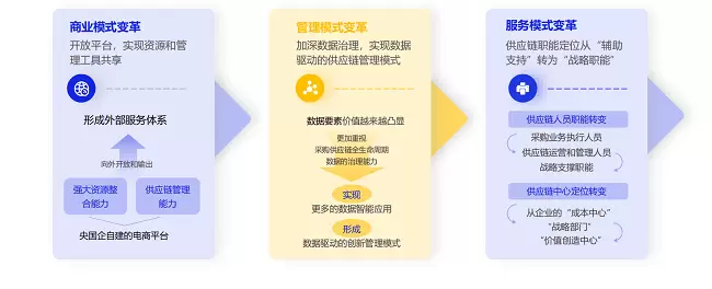 《报告》以“技术变革与价值创造”为核心议题,全面呈现了中央企业在数字化转型、供应链优化以及网上商城建设等领域的杰出实践与显著成果。《报告》明确指出,当前阶段,中央企业的网上商城正经历由传统采购管理支撑向数字化供应链平台转变的升级过程。在这一过程中,社会化数字供应链平台发挥了关键作用,有效促进了运营效率的显著提升。