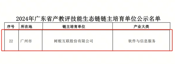 近日,广东省人力资源和社会保障厅公布了《关于2024年广东省产教评技能生态链链主培育单位评审入选名单》,树根互联股份有限公司(以下简称“树根互联”)成功入选广东省产教评技能生态链链主培育单位,标志着树根互联在产教融合、技能人才培养方面的深厚积累与领先优势获得官方权威认可。