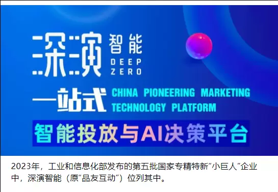 2023年,工业和信息化部发布的第五批国家专精特新“小巨人”企业中,深演智能(原“品友互动”)位列其中。