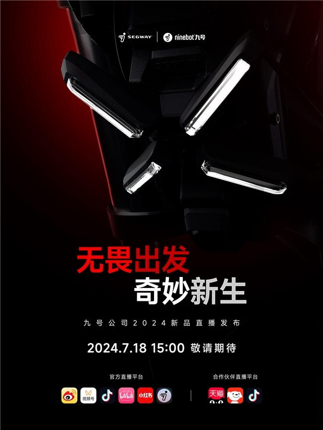 在这个充满创新与变化、行业格局日新月异的时代,九号公司将再次向世界展示了其超强的技术实力和产品创新能力。2024年7月18日15:00,锁定各大直播平台,九号公司将为全球观众带来一场别开生面的新品发布会,本次发布会主题为“无畏出发,奇妙新生”。