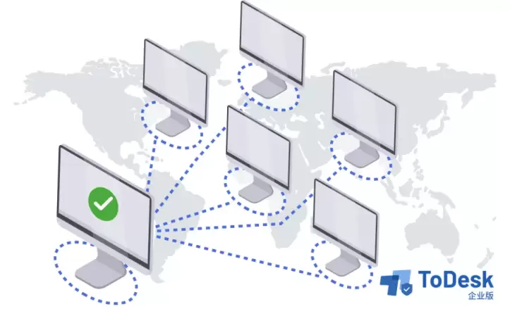 例如新疆企业A,业务是研发售卖某设计类软件,江浙地区建筑院的B公司为旗下百位员工均采购了该产品,一段时间后到了约定的使用情况排查及升级新版的时间,A公司派技术人员前往客户团队的现场处理不仅耗时耗财亦有设备监管疏漏的可能性。加持ToDesk企业版,跟公司应用一同简单部署在众设备中便能实现远程解决各问题。