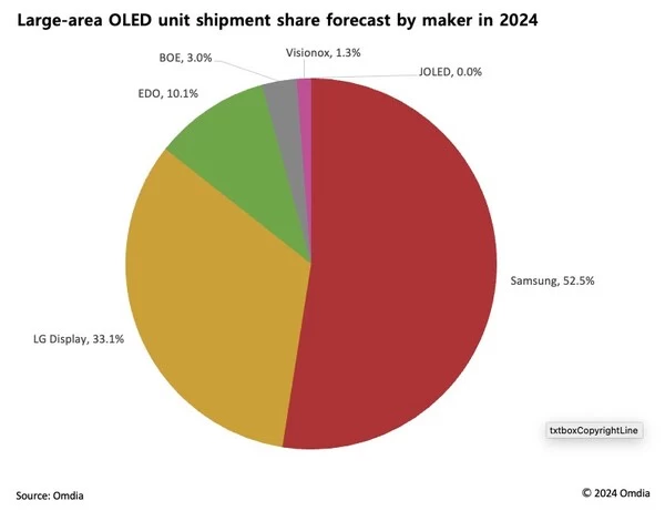 2024年各制造商大尺寸OLED面板出货量份额预测